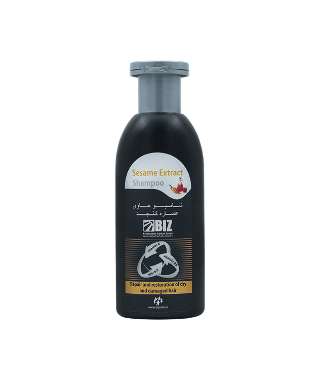 شامپو حاوی روغن کنجد بیز ترمیم کننده مو و مناسب برای موهای خشک و شکننده است.